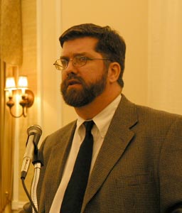 This lively and instructive presentation, by Ukrainian Rite Catholic Gregory Lloyd, added a fresh perspective for Latin Rite Catholics as to the spiritual wisdom that has always graced the eastern tradition of Catholicity. Painting with words for his listeners the icon of the Lord transfigured on Mount Tabor, a youthful Mr. Lloyd began his talk by establishing this glorious image as the exemplar of our own spiritual transformation. This is not only a journey, Mr. Lloyd assured all, but an ascent, for which we need a light to direct us. Thus, we pray the Psalm with the priest before he ascends to the altar: "Send forth Thy light and Thy truth that they make guide me and lead me to Thy holy mountain and into Thy tabernacle." The light is Christ. Our speaker stressed that, ordinarily, Jesus guides us through an ordained father, to whom He has given the light of shepherding souls.